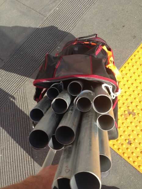 Usé 2" galvanizado tubo/conducto de cables eléctricos para fuente de sonido de timbre SF. He encontrado este tamaño para producir los sonidos más agradables y adecuados. Cualquier cosa que usted puede golpear para hacer un sonido puede ser utilizado sin embargo.