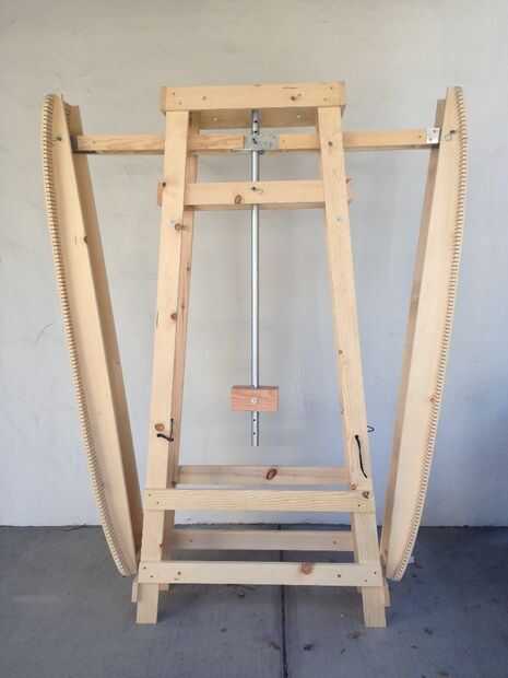 Este marco tenía que ser estable, modular y adaptable a diferentes sitios potenciales y calidades superficiales. Quería ser explorables pero entendido rápidamente, para que nadie pueda utilizarlo y poder empujado a un extremo sin romperse. Un marco básico "A" (triángulo truncado o marco trapezoide) es su mejor apuesta. Es lo se establecieron en después de varias iteraciones. Permite estabilidad en la base. Le da un lapso amplio para el martillo en. Parece más interesante que un rectángulo y es fácil de construir.