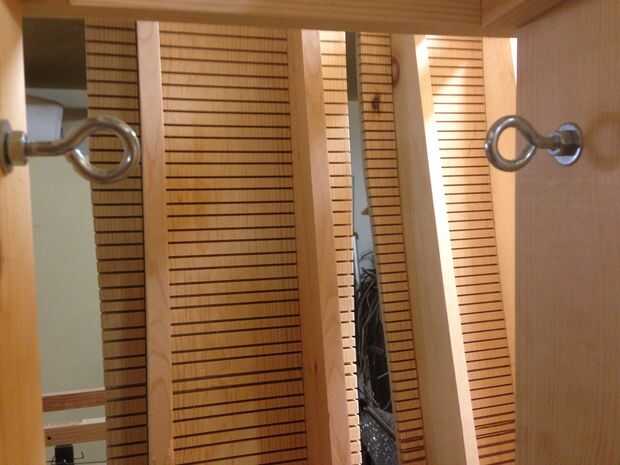 Esperé para obtener la primera imagen junta a ver a dónde dirigiría las suspensiones de campana de perno de ojo. Ahora es el momento de instalarlas. Mida su colocación, taladrar los agujeros de tamaño adecuados para los pernos que desea utilizar y poner todo en su lugar.