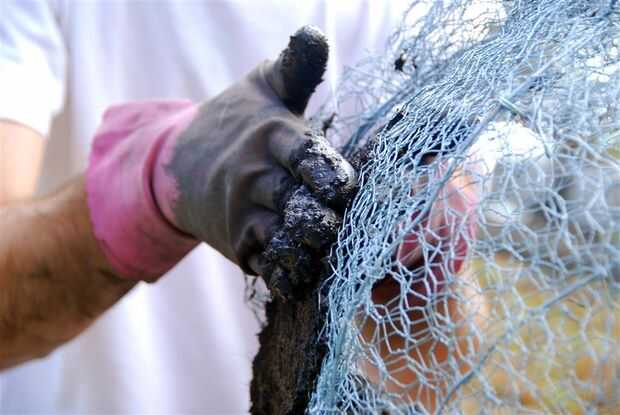 El cemento es bastante pegajoso (un lote era más húmedo que el anterior y ambos eran realizables) pero absolutamente no se queda si no hay ninguna malla de alambre para sostenerlo. Así que no esperes llenar los huecos, especialmente si están en un plano horizontal o inclinado.