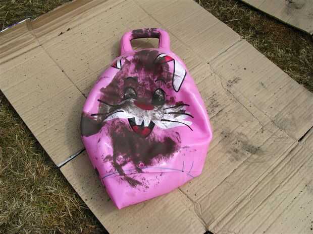 Originalmente pensé dejaría la bola skippy dentro y empacar el cemento contra él, pero necesita dos manos para empujar.