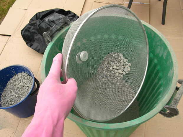 Tip: hacer la mezcla no get ready-made 'concreto'. (como lo hice por accidente). Mezcla de hormigón contiene grava (duh) y eso hace imposible manchar el cemento entre la malla de alambre de pollo o terminan con un final liso. Porque quería empezar el día de Navidad y por lo tanto no podría ser cualquier otra mezcla que terminó tamizado de grava fuera de mi cemento con un artefacto había dejado de hacer una antena WiFi. ;-)