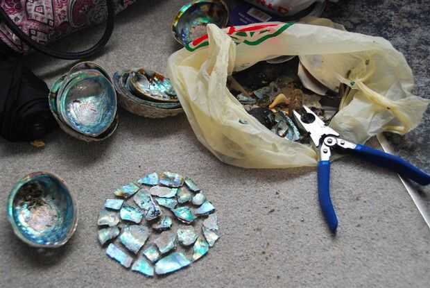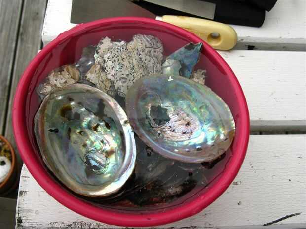 Sumergió las cáscaras de paua en agua para asegurar una buena adherencia con el cemento húmedo.