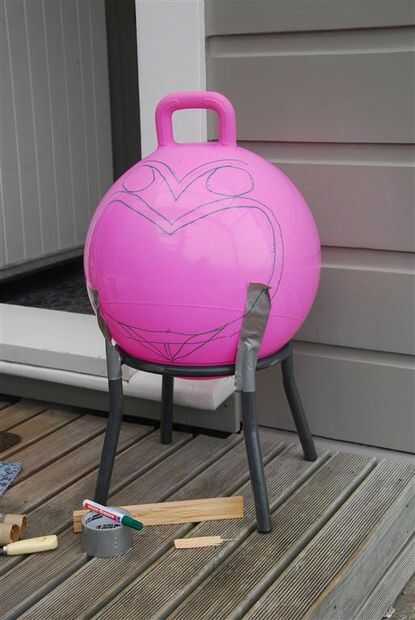 Para cortar la boca de la malla de alambre y determinar la posición de los ojos y cejas dibujé en la bola de skippy antes de empezar.