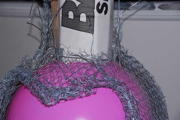 Esto luego colocar encima de la esfera sobre el agujero de diámetro 20 cm en la malla que me había salvado.