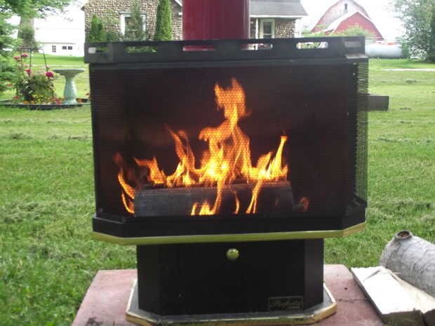 "Sr. Fire Face" la chimenea al aire libre hechos de antiguo depósito de gas propano