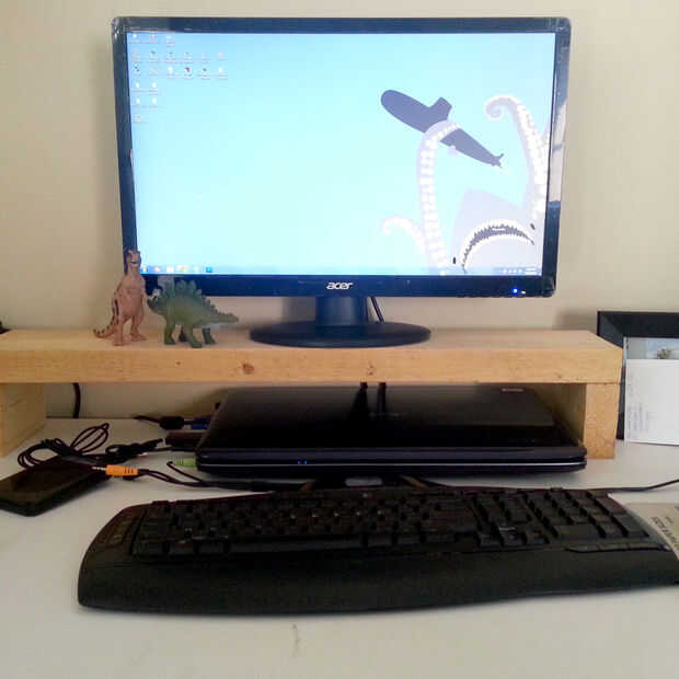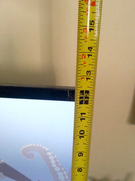Tomé las dimensiones del monitor, junto con el grueso y que tome nota de la distancia entre la parte inferior del monitor y parte inferior del soporte.