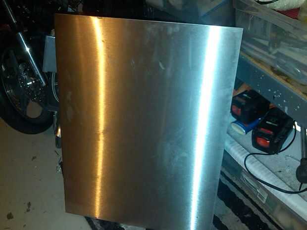 1/8" espesor de acero inoxidable (mina de medida 12 x 24). Costo: de $10 en un depósito de chatarra