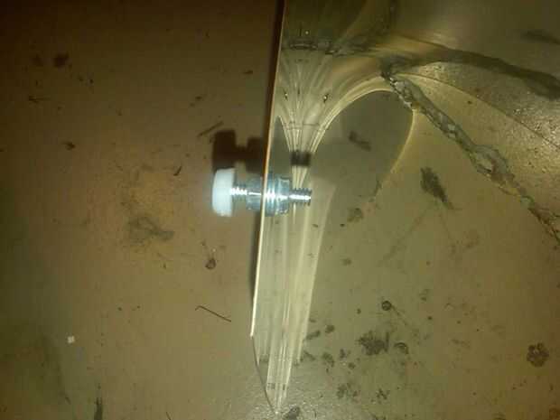 Poner el soporte del canal en acero inoxidable con tuercas y tornillos. Poner más tuercas y tornillos en las 4 esquinas de la base. Para que el perno sostiene el acero inoxidable, utilice 2 tuercas para emparedado del acero inoxidable y espacio entre el suelo y el acero. Se puede ir sin poner los tornillos de la 4 esquina, pero poner las piernas en él no sólo le da un aspecto más limpio, sino también equilibra vuelque sobre su parte posterior.