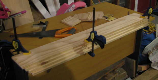 Pegar sólo los pasos de fondo 3 en esta etapa. Esto es para evitar agujeros en la parte superior - que veremos en un paso posterior. Ser generoso con el pegamento PVA y luego fije las piezas juntas mientras el pegamento se seca - sí sé que la foto muestra 4 piezas con abrazadera.