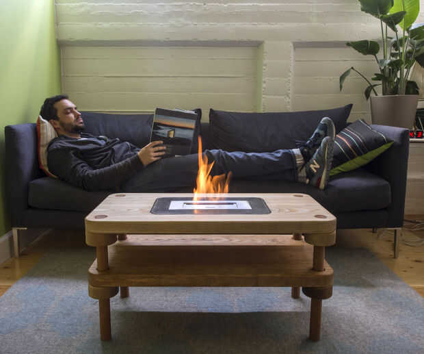 Las empresas que hacen etanol quemadores de chimenea también hacen algunos accesorios de chimenea independiente muy bonito, pero por el limitado espacio de mi apartamento del área de la bahía, necesito mis muebles a ser multiusos. Por lo tanto, la mesa de centro de la chimenea.