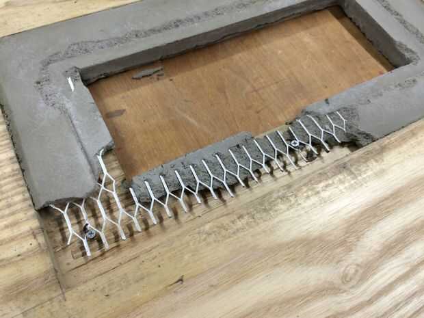 Tamizada por el agregado de mi mezcla de hormigón para que fluiría a través de la malla fácilmente. Todo la malla que hizo al final fue retener la mezcla de hormigón y evitar ganar compra la madera. El resultado final tenía sólo compra en una esquina, que el resto era un desastre desmoronamiento llenó de burbujas de aire.