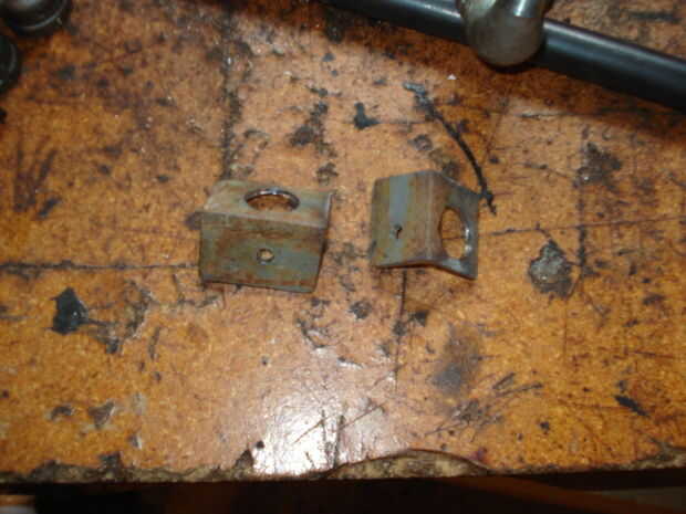 Corte 2 piezas de hierro ángulo de 1 1/2 por 1 1/2 por 2 pulgadas. Taladrar un agujero de 1/8 de pulgada en un lado en tanto piezas y 5/8 agujero en los otros 2 lados.