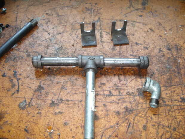 Todas las piezas son tuberías de hierro negro de 5/8. 1 t, 2 pezones de 4 pulgadas, 2 tapones, 1 codo de 90 grados, un niple de 6 pulgadas y un niple de 8 pulgadas.