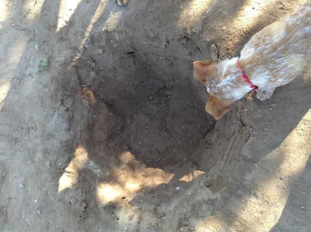 En mi caso usé la pala cabeza cuadrada para el hoyo en la clase de una forma octogonal de la forma por lo que es más fácil que colocar ladrillos! (Mi perrito no alejarse del orificio)