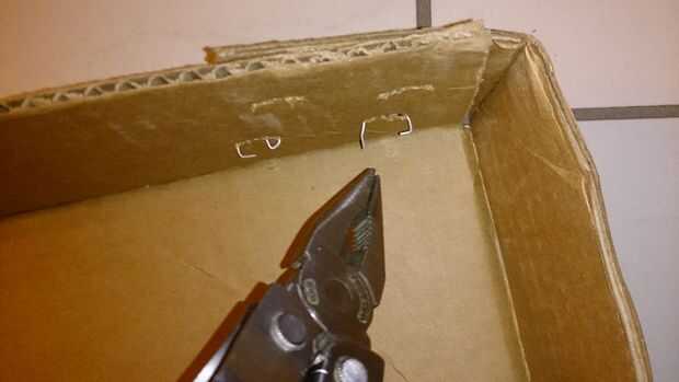 Tomé las grapas industriales fuera de los lados más largos de la frente y corte aproximadamente 3 pulgadas en la longitud de la tapa.