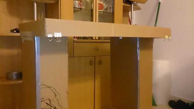 Los bancos la tapa, puse las columnas dentro y lo corte ahora de la tapa de la caja al ras con la parte posterior de las columnas.