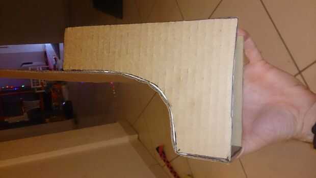 Una vez que las piezas son buenas y sólidas, tomar una o dos que cubra este refuerzo y completar el look "sólido". Utilicé dos puesto que había en ese momento no era una buena pieza de cartón lo suficientemente largos para cubrir.