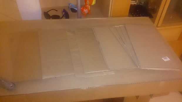 Usando un patrón, había trazado decenas de "ladrillos" en la cartulina, más que lo que necesitaba, pero que está bien.