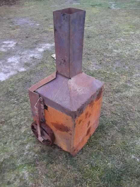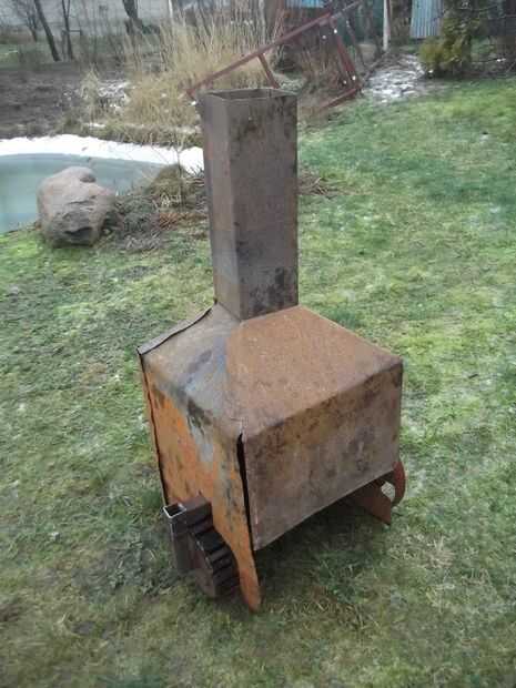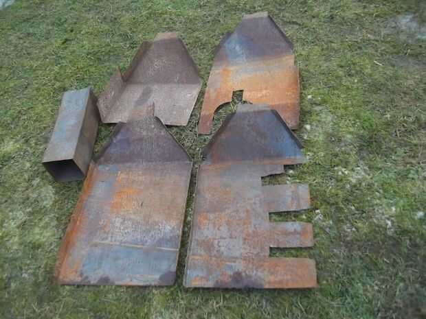 Esta parte era complicada, porque tenía que improvisar en todas estas obras de hojalata. Principalmente medir, cortar, medir, cortar, medir, corte y así sucesivamente, hasta llegar a lo que usted quiere. El propósito de esta cubierta es ayudar a retener más calor en la chimenea, el enfriamiento del viento y crear algún tipo de proyecto, por lo que el fuego sube a las piedras. Todo este arte del origami debe retirarse fácilmente cuando está caliente, por lo que podría ser tranquilo una estructura inestable con algunas grietas. La cosa es mantener en el lugar principalmente por la chimenea de 10x10cm. Cuando usted toma hacia fuera de la chimenea, los cuatro lados caen literalmente appart. That´s como debe de ser, you´ll tiene que manejar de alguna manera candente hojalata.