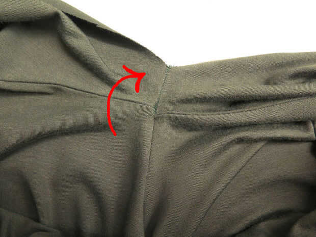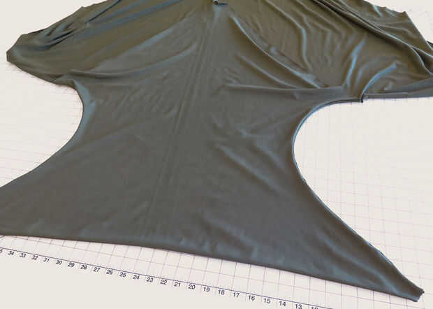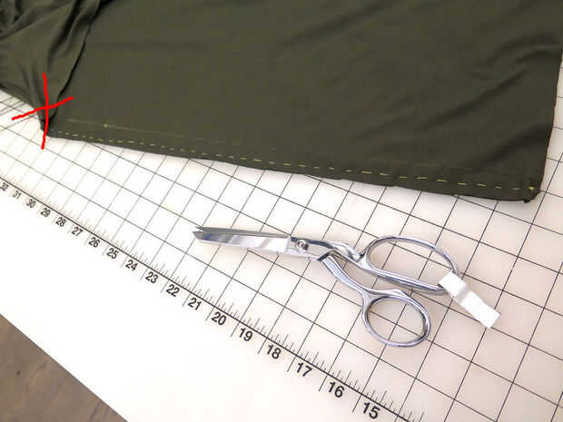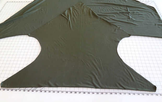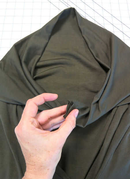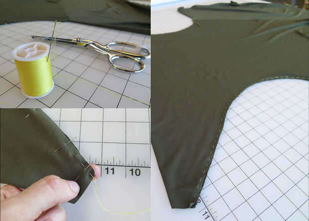 Desplegar su frente y mantenga Hilvanar los dos pedazos juntos hasta en la frente para que pueda una costura limpia serge a lo largo del centro de la espalda y en la frente, que luego será doblado hacia dentro para crear un acabado limpio.