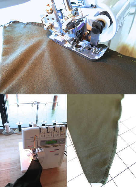 Serge su línea cabestro las costuras con una 1/4" puntada overlock estrecha, dejando la cuchilla de corte Retire aproximadamente 1/4" de material, así que su costura presta la derecha en la 1/2" línea de costura.