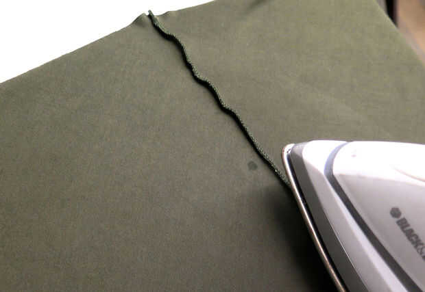 Sentar hacia fuera la pieza cosida y presione suavemente los bordes planos. Prensa de frente al lado de la prenda. Utilice un paño de prensa entre la plancha y la tela para evitar manchas brillantes, no presione demasiado y sobre todo utilizar vapor.