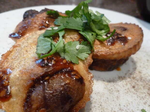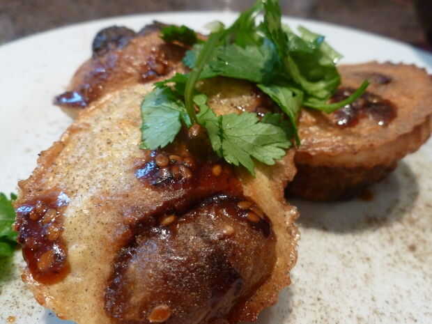 China miel y sésamo semillas el pollo es un plato consistente en trozos pequeño, parcialmente fritas de pollo envueltos en un esmalte de semilla dulce de miel y sésamo y luego al horno.Cabe destacar que el plato no es realmente representativo de la c