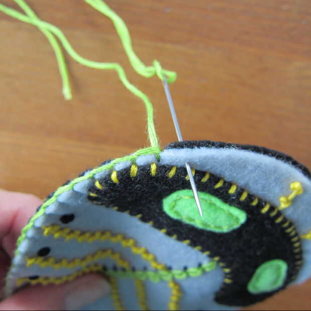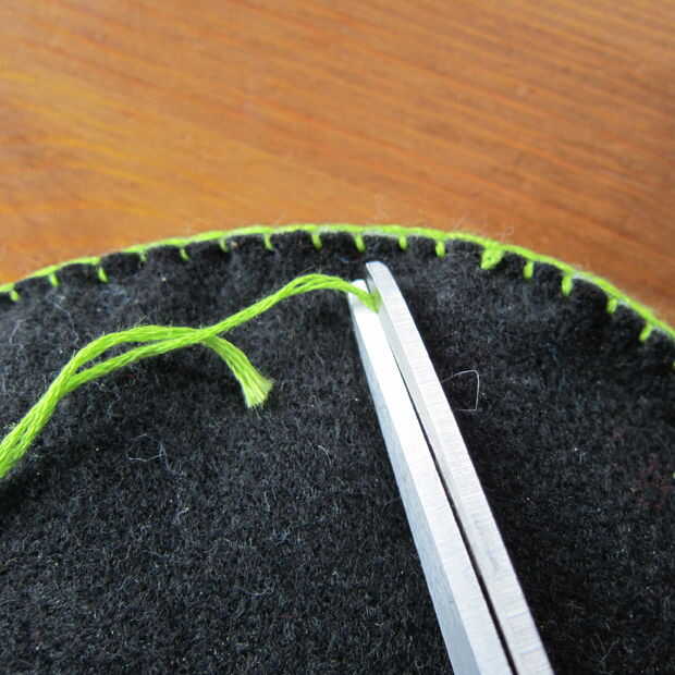 ** Cuando ate un nudo en la parte posterior de un proyecto yo siempre tome mi aguja y pase el hilo por la tela sobre una mitad de pulgada y luego cortar. De esta manera no tengo ningún hilos sueltos que puedes ver. Esto mantiene el proyecto muy ordenado.
