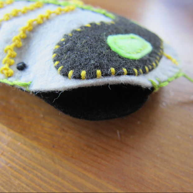 Continuar todo el insecto dejando un espacio lo suficientemente grande como para llenar de trigo blando.