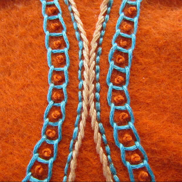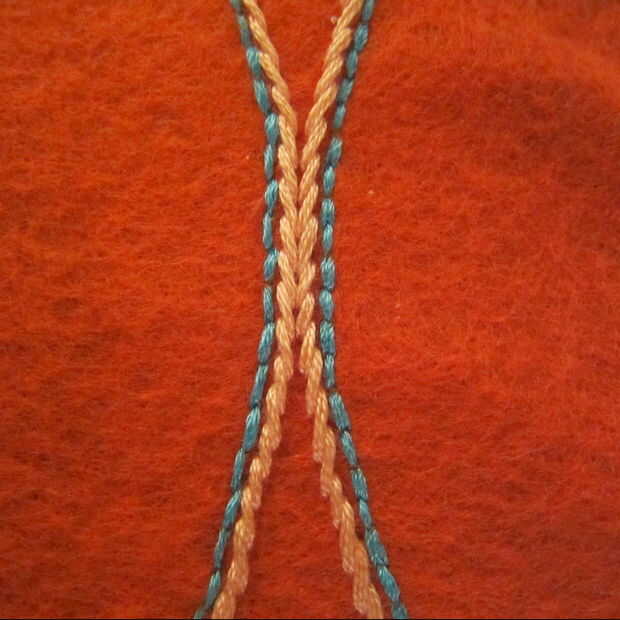 Para delinear el borde exterior del ala utilicé una puntada de tallo.