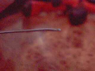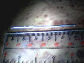 Tomar el alambre y cortar una longitud razonable de él. La regla es para la escala. No necesariamente tiene que ser esa longitud; puede ser cualquier longitud. Luego corta un pedazo minúsculo de un extremo en un ángulo para conseguir un punto agudo.