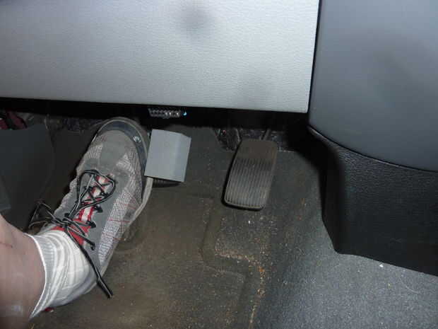 Ahora, cuando conduzco con el control de crucero, puedo descansar mi pie en el Pedal del freno Chindogu apoyo durante todo el día sin tener que utilizar un músculo para apoyar mi pie. Si algo sucede, todo lo que tengo que hacer es mi pie hacia abajo y el coche viene a una parada segura.