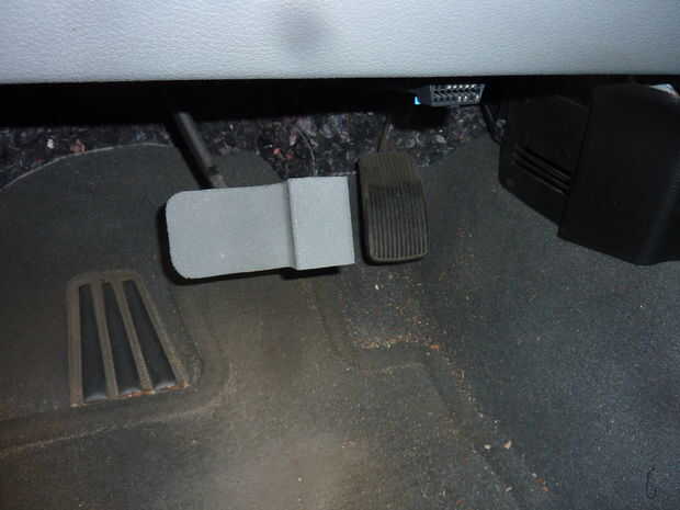 Entrar en el Pedal del freno soporte Chindogu, Unido, como en este caso, mediante cinta de doble cara, o para instalaciones más permanentes, con abrazaderas de servicio pesado, directamente en el pedal del freno.
