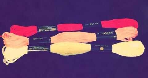 Elegir al menos tres colores de hilo de bordado para la pulsera. Usé estos colores para el día de San Valentín que es 14 de febrero.