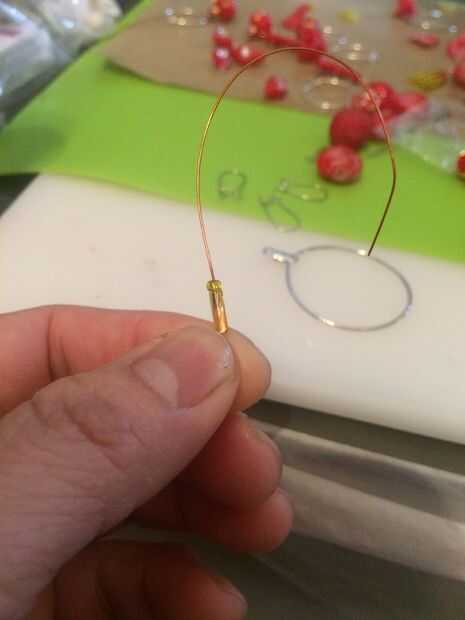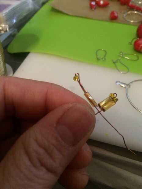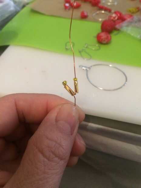 Tomar otra tira de Clarín e Inserte el cable a través de y siga el mismo procedimiento que el primero. Continúe hasta que se han añadido 3-4 granos del bugle.