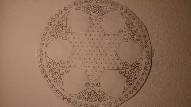 La parte más importante de este proyecto es la forma de la estrella Hexagrama y los espacios. He comprado una placa de inspector chino de una tienda de segunda mano para usar como una guía. Podría medir hacia fuera o encontrar un patrón en línea también.