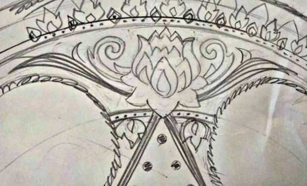 Hora de diseñar! He creado mi diseño alrededor de la imagen de una flor de loto floreciente. Repetí el diseño entre cada bolsillo mármol simetría. Usted puede hacer cualquier tipo de diseño que te gusta! Divertirse y conseguir realmente creativo!! Si eres un principiante en el trabajo del cuero puede ver algunos diseños en cuero útiles libros o en línea para ver diferentes estilos y diseños usted puede hacer en cuero. Es increíble la profundidad, detalle y texturas que puede obtener!