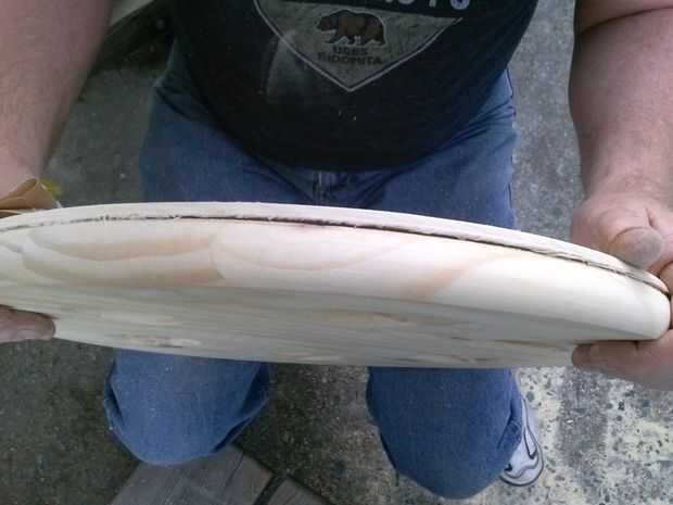 4. Tome el diluyente, redondo trozo de madera y fíjelo en el bajo lado de la pieza redonda gruesa de madera mediante la aplicación de pegamento para madera. Asegúrese de que las dos piezas en seco plano para asegurar un nivel Consejo. Un tablero irregular hará las canicas rodar por todas partes! Para el apretón adicional entre las dos piezas de madera se pueden utilizar tornillos.