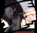 Ahora toma una muy pequeña hebra de cabello del lado del potro. Dividirla en dos filamentos. Tomar el lugar de filamento de fondo sobre la parte superior del filamento un hacen un nudo. Repita el mismo proceso un hacen uno más del nudo.