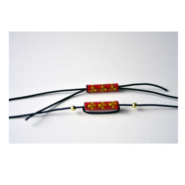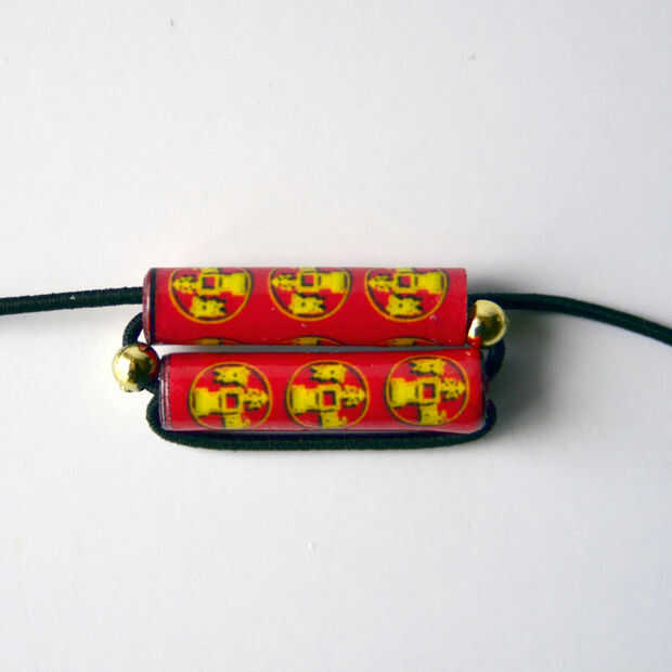 Añadir un grano de oro en cada filamento del elástico y repita el paso anterior con la siguiente perla. Continuar haciendo esto hasta que todos sus granos se encadenan. Vigilar el tamaño para ver cuántos granos necesita a su muñeca. A pesar de esta pulsera es elástica, todavía puede ser demasiado flojo o demasiado apretado si no mantener un ojo en la cuenta de cuántos usas. Usé el 18 para los míos. Mis plantillas fueron impresas en papel de gramaje de 120 gsm.