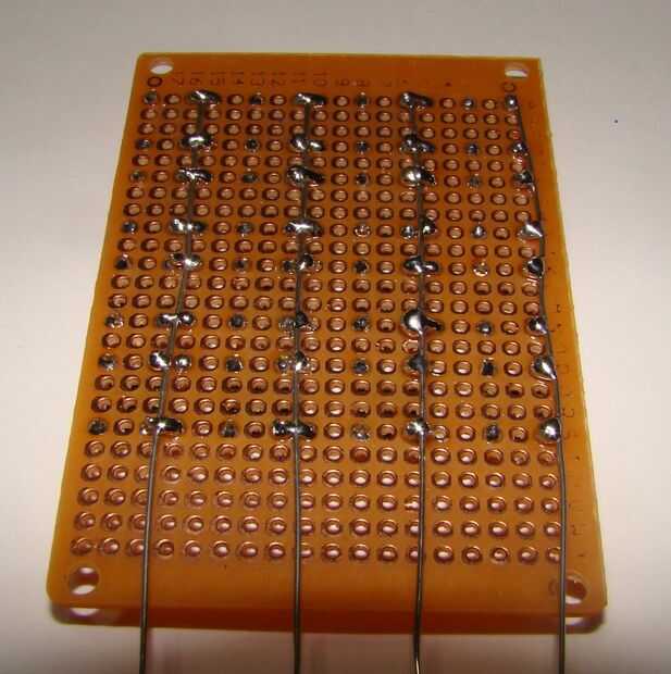 1) una vez instalados todos los conmutadores, dé vuelta la Junta (¡ con cuidado!) y soldar cada uno de los contactos del interruptor en el tablero de perf.