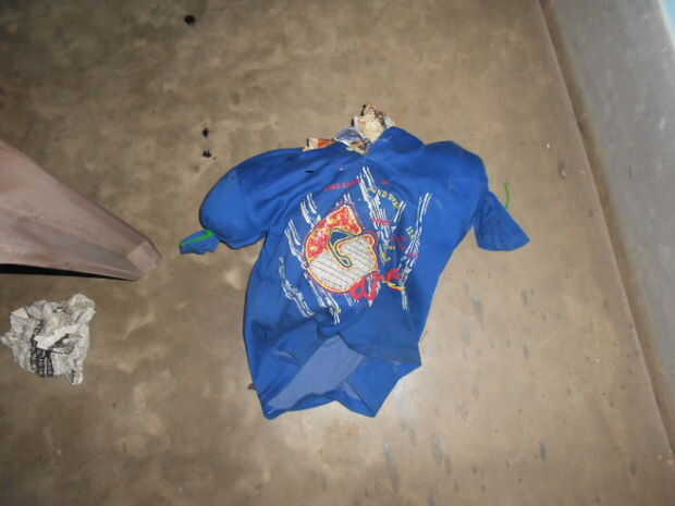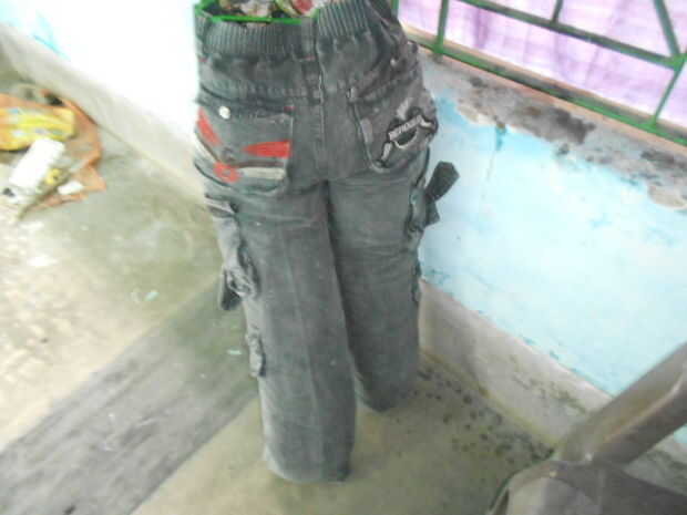 tomar un viejo pantalón y la camisa y el papel
