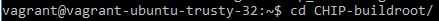 A continuación usted va a cambiar en el directorio de CHIP buildroot en su vagabundo VM: