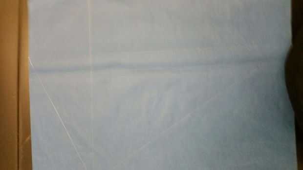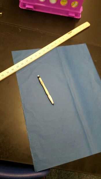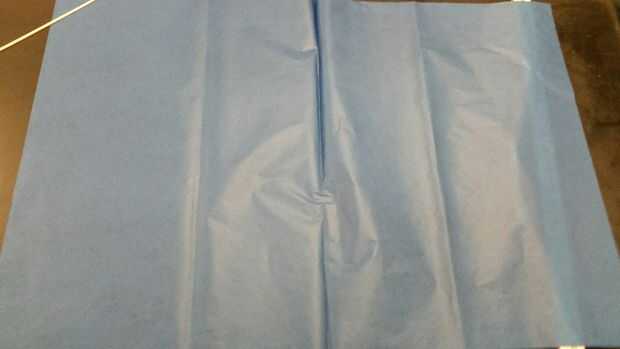 Primero empezar por conseguir su azul 20 "x 30" hoja de papel de seda. Doble el pedazo de papel de seda de longitud media para asegurarse de que ambos lados son iguales. Comience en la parte superior hacia abajo de 5 pulgadas y 10 pulgadas a través de la medición. Tome un lápiz/regla y trazar una línea recta que conecta las dos marcas. Ahora ve a la parte inferior del pañuelo de papel y medir 10 pulgadas a través, conectar esta marca a la marca de 5" hacia abajo desde la parte superior. Entonces voltee el papel y repita las mediciones.