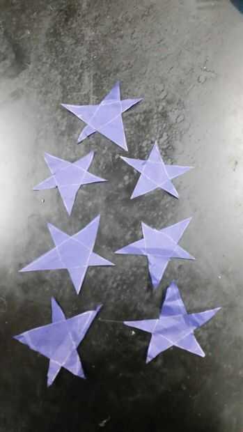 En los rectángulos rojos pegar las estrellas en estos lugares. Poner 2 en cada tapa del rectángulo, 1 en cada fondo y 1 en el área de intersección.