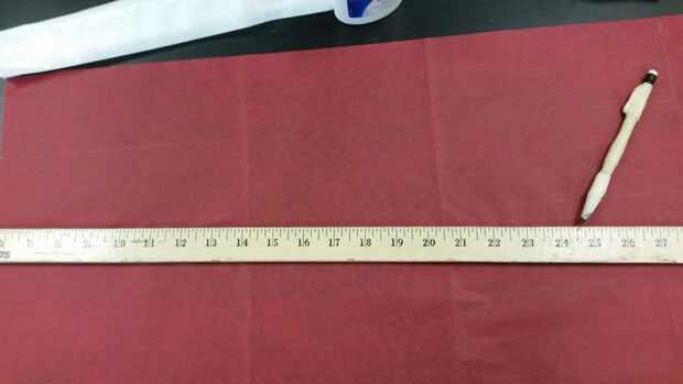 Medir 2" hacia abajo y 23" a través de. Esto debería hacer una forma rectangular.