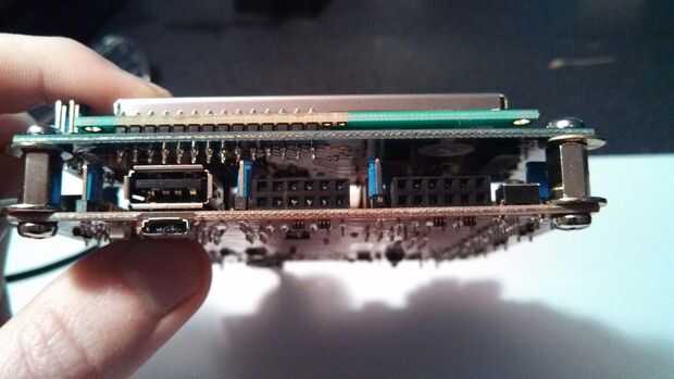 Quería que este proyecto sea tan portátil como hacerlo dado el tamaño del MX4. Los orificios de tornillo en la pantalla LCD se alinean perfectamente con los orificios izquierda o derecha en el MX4 decidí atorníllelo a la parte superior utilizando separadores. Ellos tenían un tacto demasiado corto así que añadido arandelas en la parte superior e inferior de los separadores, como se puede ver en la figura 2.