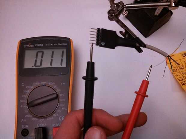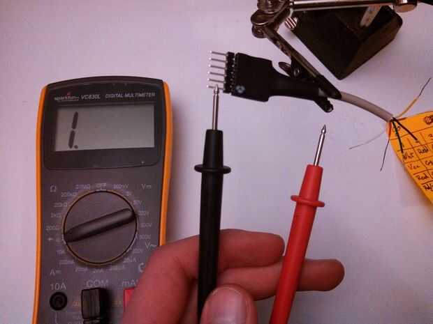 - Prueba de que los colores de su cable de Pmod coinciden a la mía.- Establecer multímetro a pitar cuando las sondas están conectadas eléctricamente