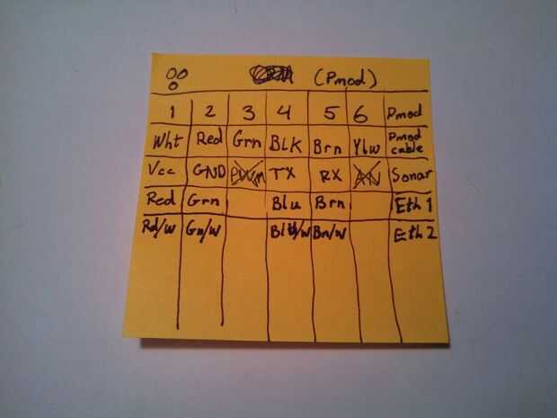 - Si el tuyo no coincidir a la mía escribir tu propia mesa para asegurarse de que están recibiendo la misma orden de pines en ambos extremos.